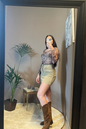 Minigonna di jeans beije elastica, Roberta indossa la S
