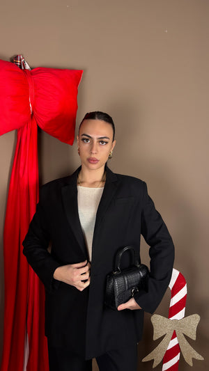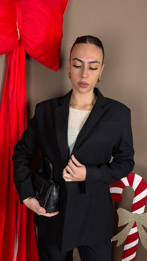 "Blazer crop in twill: taglio femminile e struttura leggera. Perfetto su jeans e tacchi."