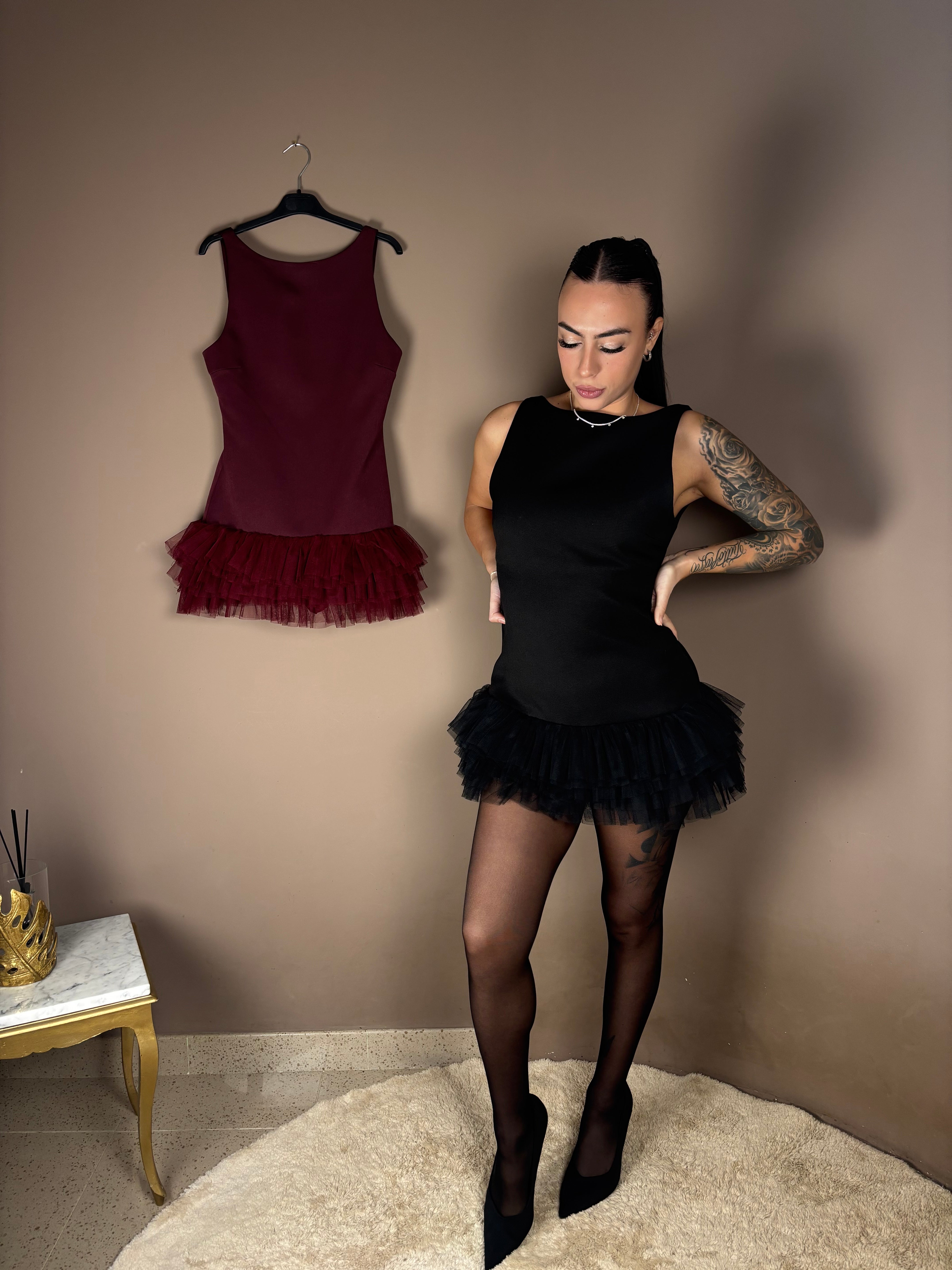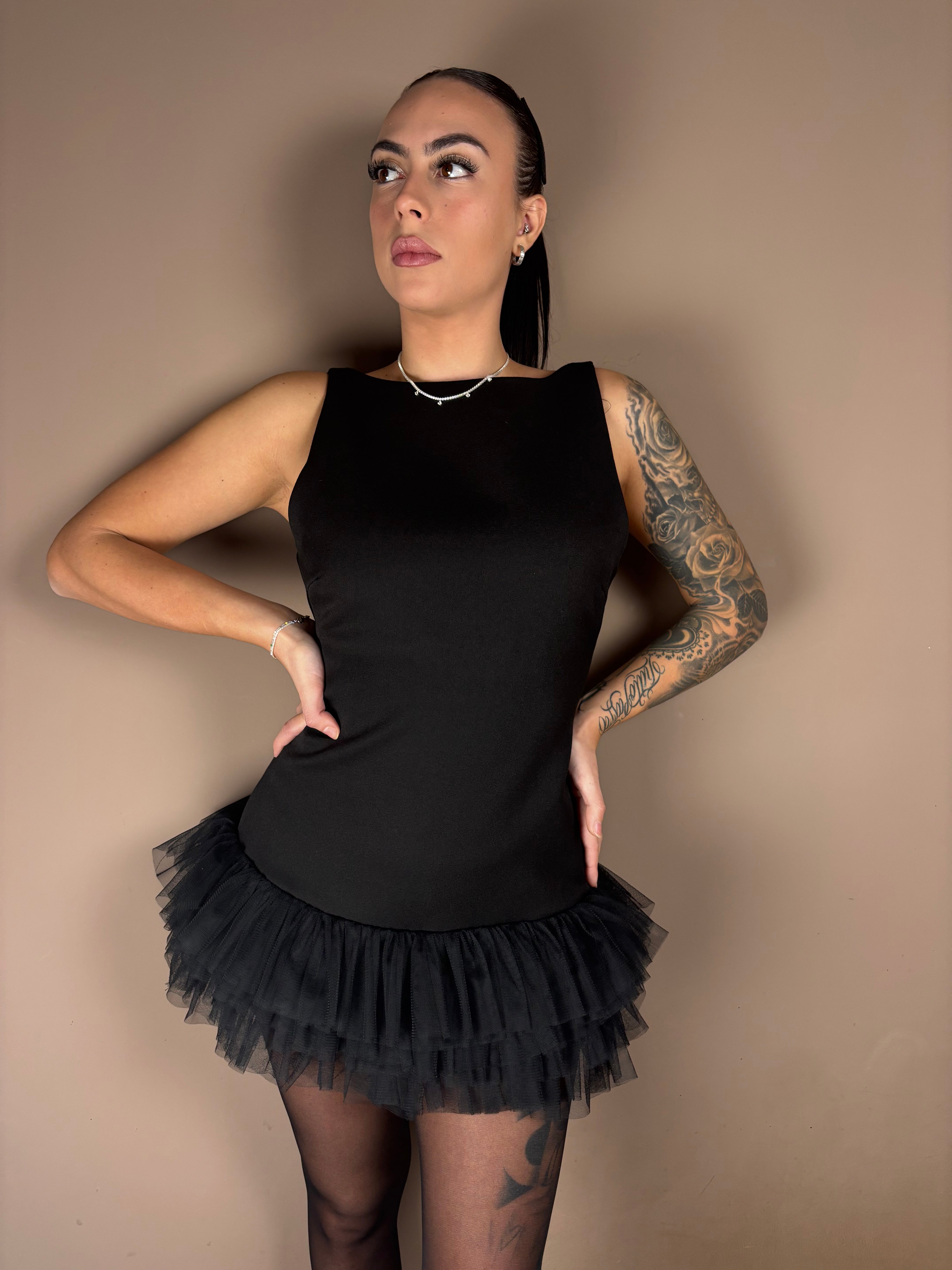 Abito in tulle , pantaloncini al suo interno , cerniera sul retro, Ambra indossa taglia M