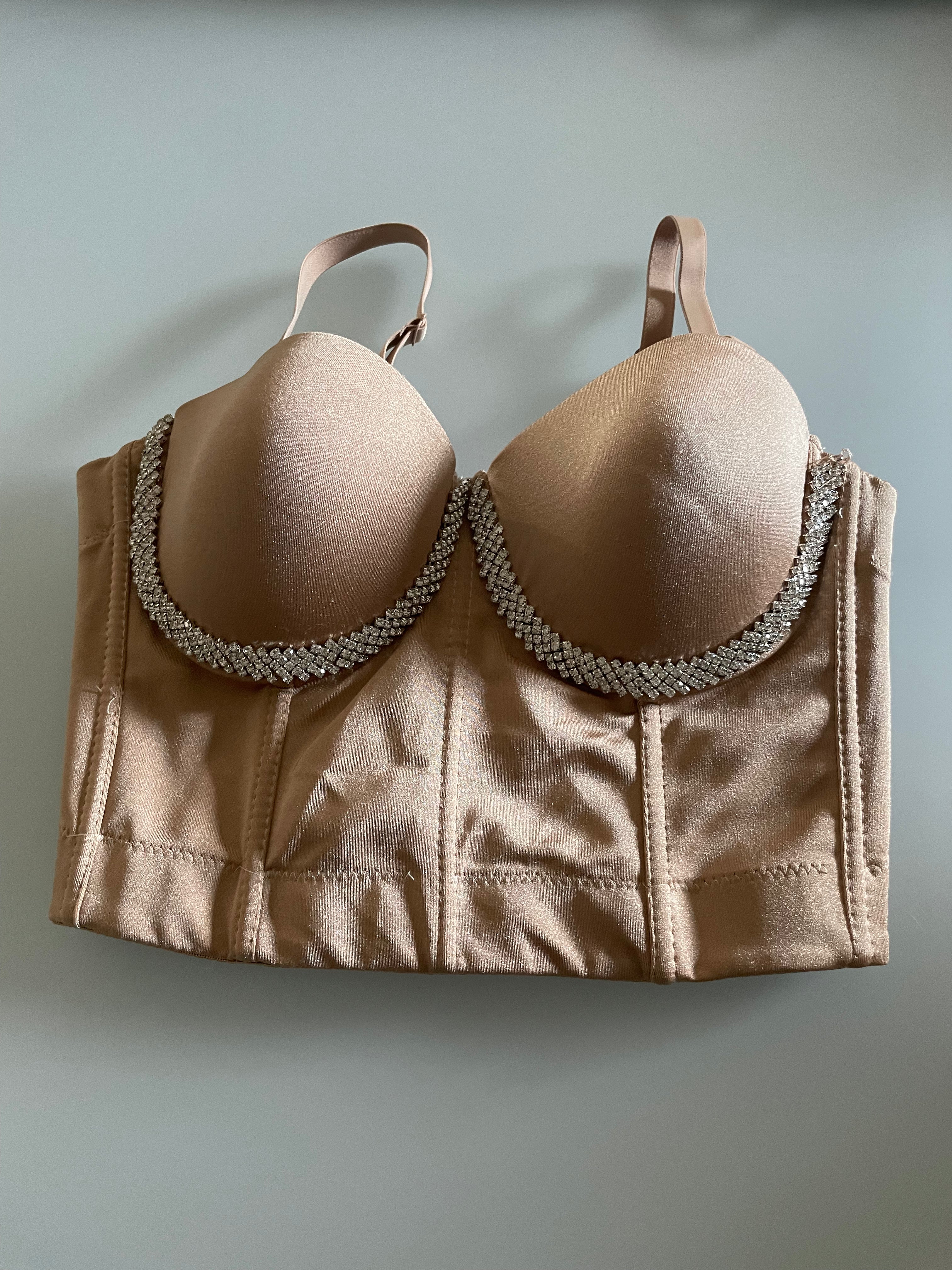 Corpetto con ferretto sotto le coppe e gioielli chiusura con Ferretti sul retro, Roberta indossa 36-80