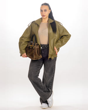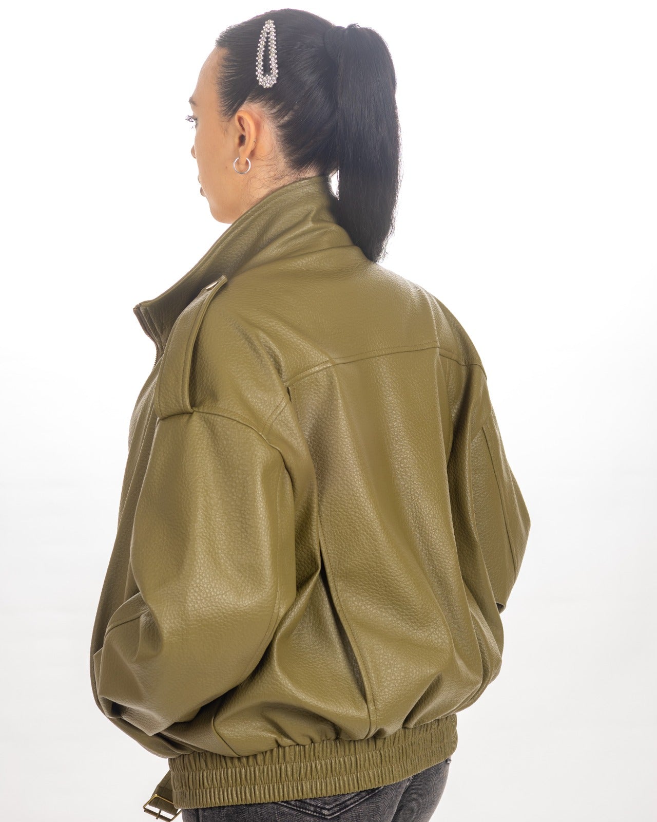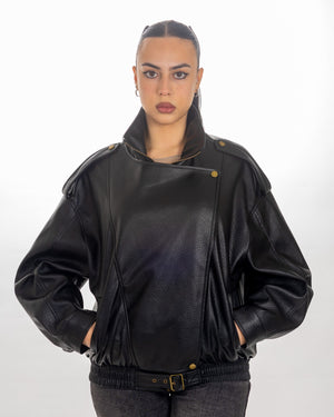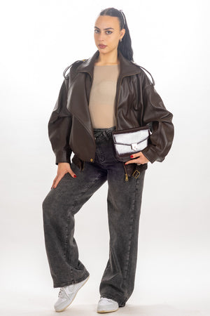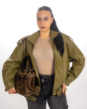 Bomber in eco pelle , elastico in vita , cerniera sul davanti, taglia unica , vestibilità dalla xs alla xl