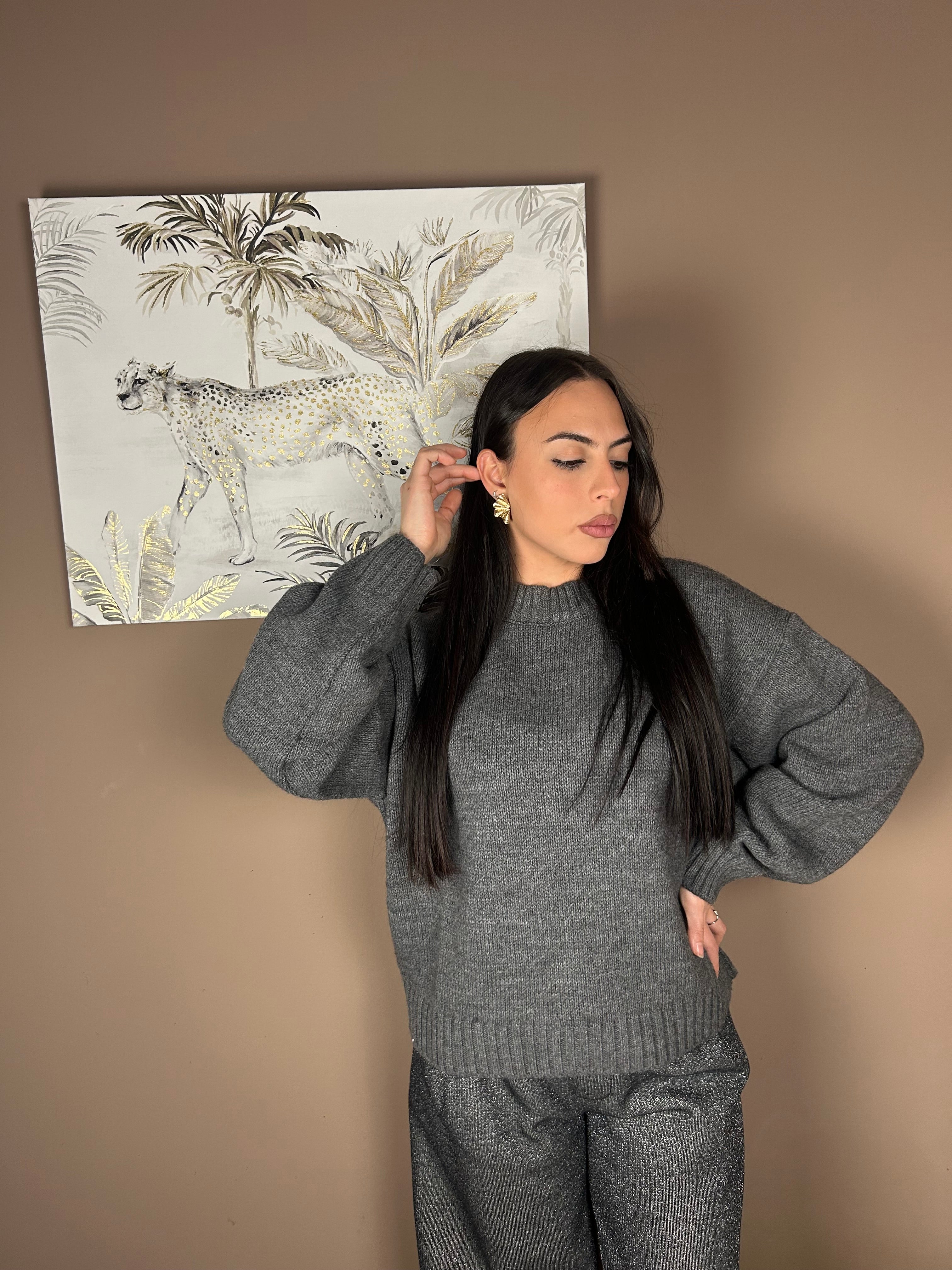 Maglione in misto lana, collo rotondo , vestibilità oversize disponibile in taglia unica.