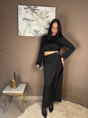 Vestito cut out con decorazioni gioiello di lato , Ambra indossa taglia M